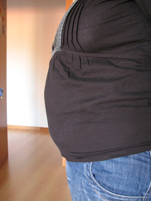 Estava eu de barriga para cima, com a camisola levantada e a passar a mão na barriga, quando ela me pergunta: